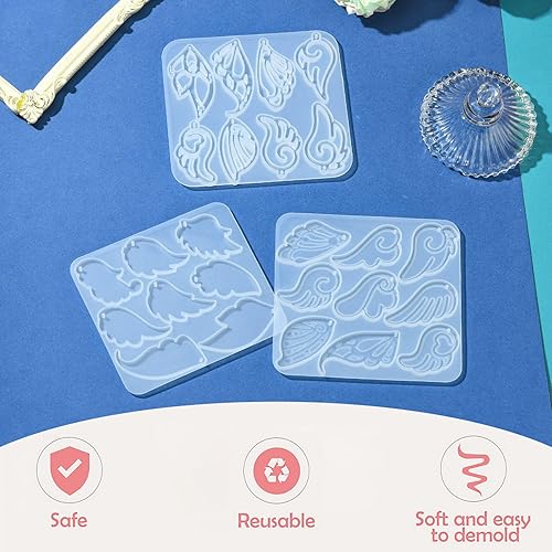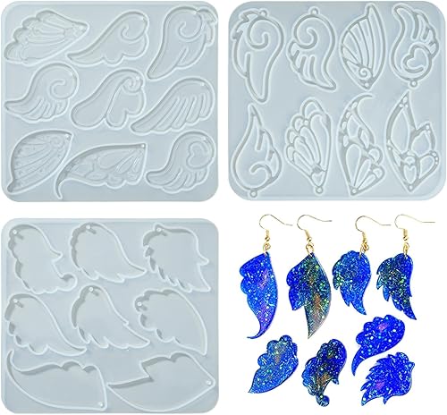 Airssory Lot de 3 moules en silicone sur le thème des ailes d'ange et de fée pour fabrication de bijoux et boucles d'oreilles en résine époxy
