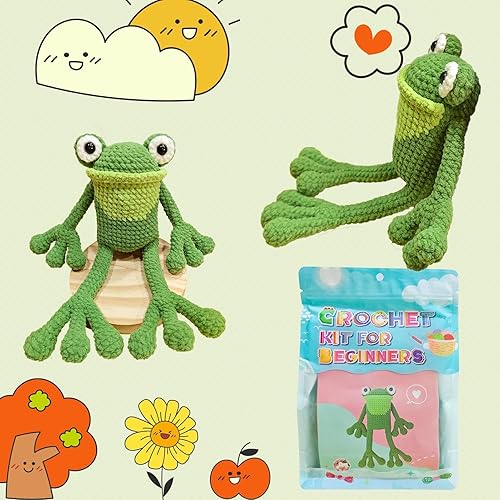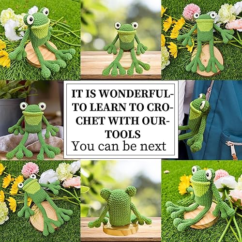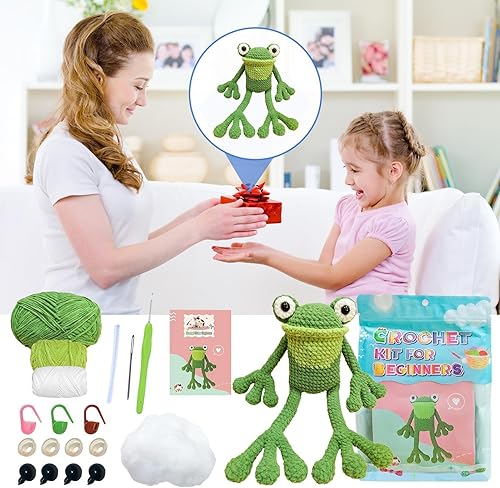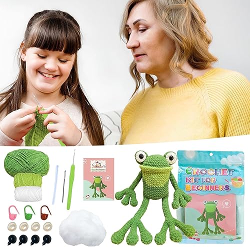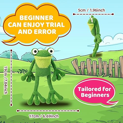 Wlikmjg Kit d'animaux Au Crochet Grenouille, Kit D'artisanat Grenouille De Dessin Animé pour Enf-Ants,kit Complet d'animaux Au Crochet, avec Fil À Crochet, avec Instructions Étape par Étape