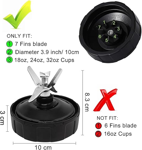 Lame de Rechange pour Mixeur Ninja BN800EU BN750EU BN495EU BN751 BN801 BL480, 7 Ailettes Ninja Mixeur Mixer Blender Lame Accessoire