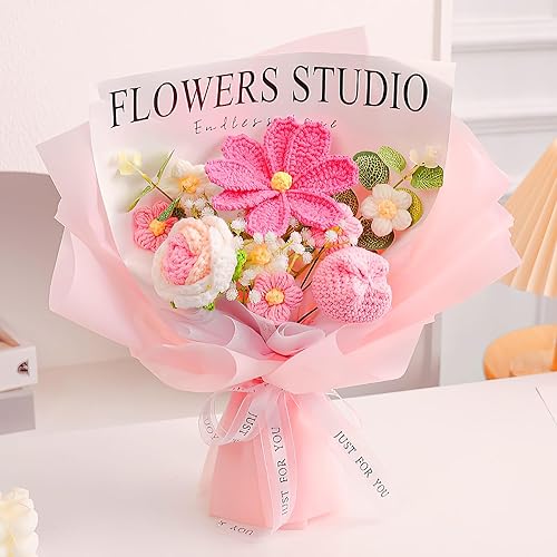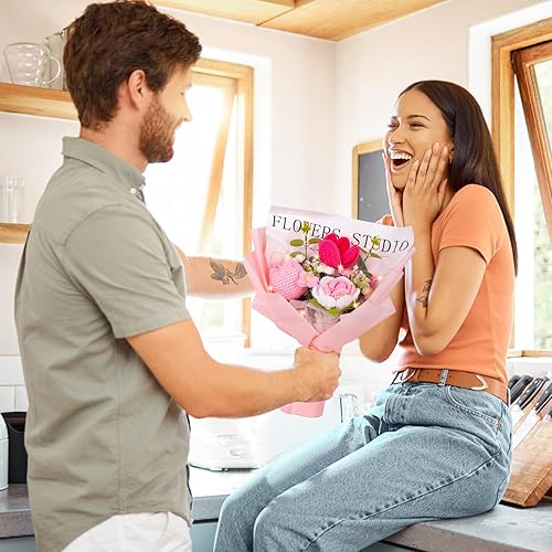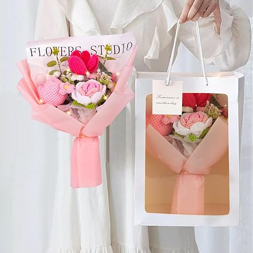KBIBCK Bouquet de Fleurs artificielles, Artificielles au Crochet Fait à la Main en Peluche, Bouquet de Tulipestricotés pour la fête des mères, Fleur Cadeau Femme