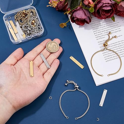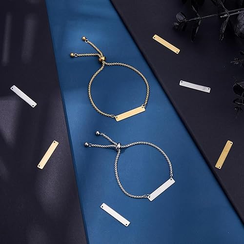 Hobbspring Lot de 12 bracelets à graver de 2 couleurs, avec 12 connecteurs rectangulaires en acier inoxydable, 12 bracelets coulissants et anneaux ouverts pour la fabrication de bracelets au laser