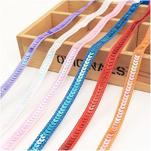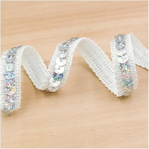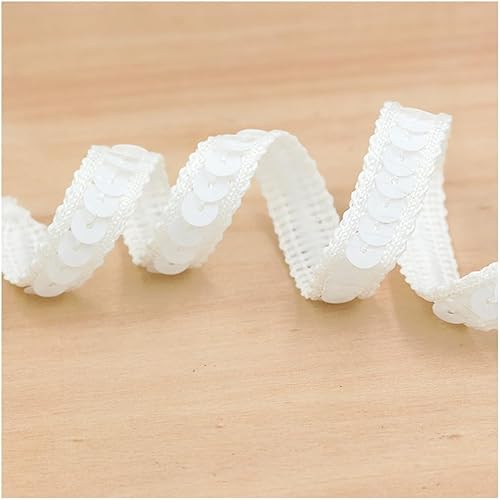 Hrlace Ruban à paillettes de 1,2 cm - Ruban décoratif à paillettes - Pour bricolage, couture, costumes, robe, bandeau, artisanat, décoration de mariage - Blanc pur - 2 m