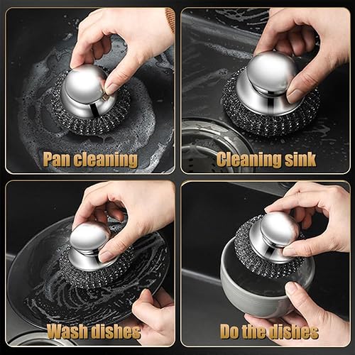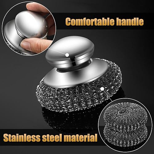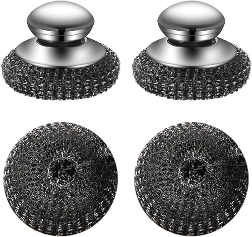 2 Pcs épurateur Laine en Acier Inoxydable, éponge Grattante Métal Remplaçable avec Poignée et 2 Boules de Fil de Remplacement pour Nettoyer la Vaisselle