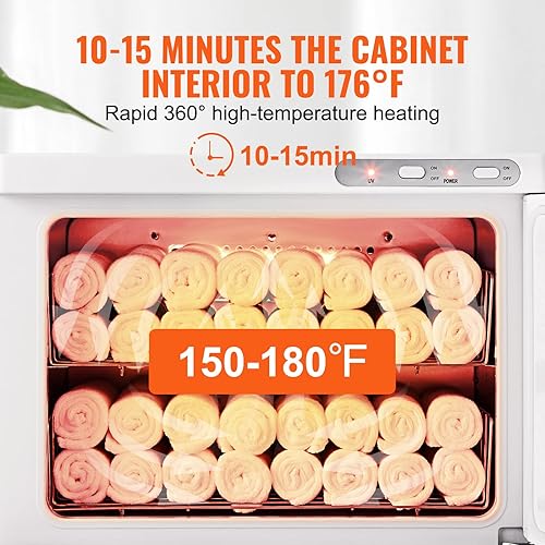 VEVOR Chauffe-Serviettes Stérilisateur 23 L Sèche-Serviettes avec Lumière UV et 2 Paniers en Acier Inoxydable Chauffage Rapide Convient pour Max 54 Serviettes Spa Salon de Beauté Salle de Bain Hôtel