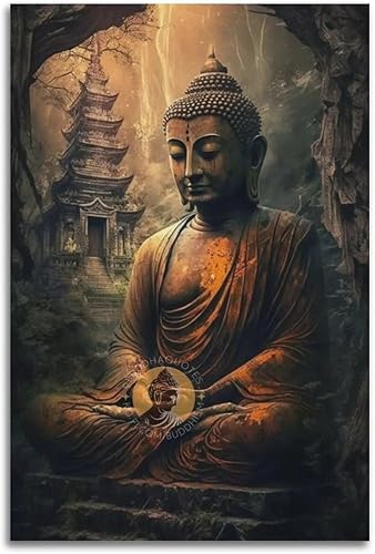 YBHF Poster de statue de Bouddha sur toile, peinture zen, art mural, impression rétro, esthétique, décoration de chambre, décoration de bureau, 60 x 90 cm, style sans cadre
