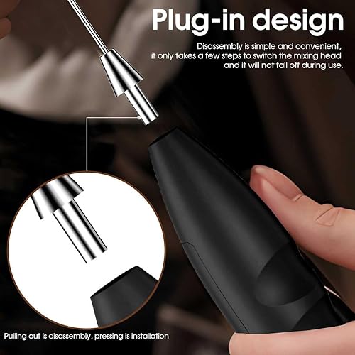 LULUWA Mousseur à Lait Portable - Mini Mélangeur pour Boissons Mixeur à Plongée électrique Fouet Moussant pour Café, Bâton pour Lait (Noir)