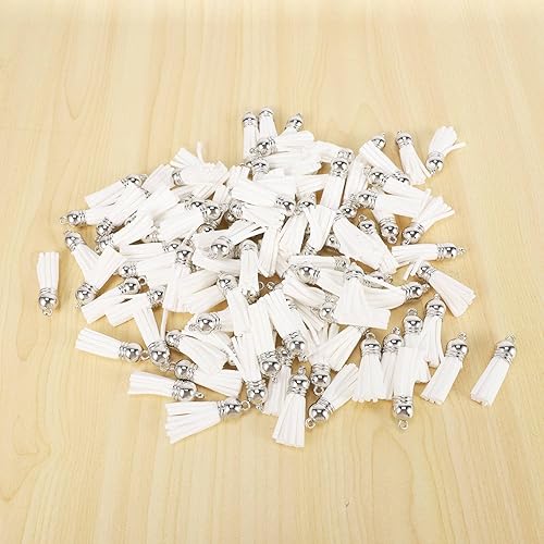 Wanjorlay 100 PièCes Porte-CléS Glands Faux Cuir SuéDé Gland Pendentifs Porte-CléS DéCoration pour Bricolage Artisanat Faisant des Fournitures (Blanc)