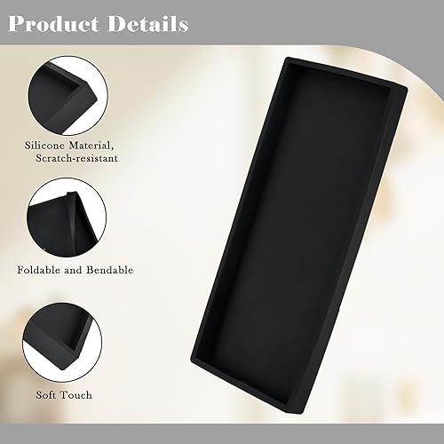 Jiayaus Lot de 2 plateaux de salle de bain - Décoration de salle de bain - Grand plateau noir - Pliable - Pour cosmétiques, bijoux, bougies, salle de bain, vanité, chambre et cuisine
