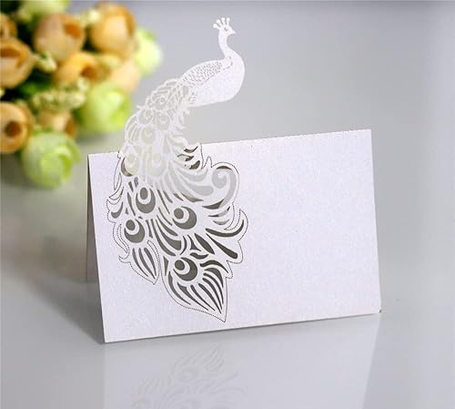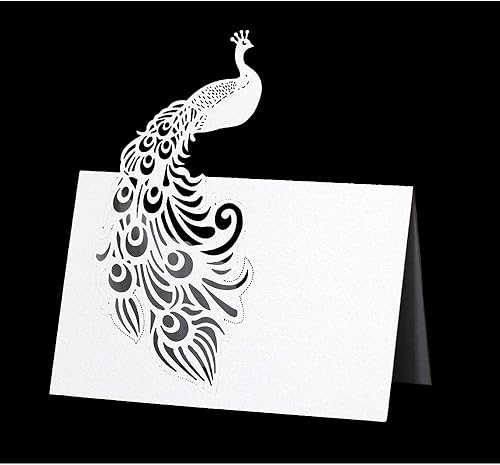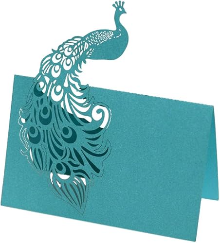 GIVBRO Lot de 50 cartes de table en forme de paon pour décoration de fête ou de mariage Bleu
