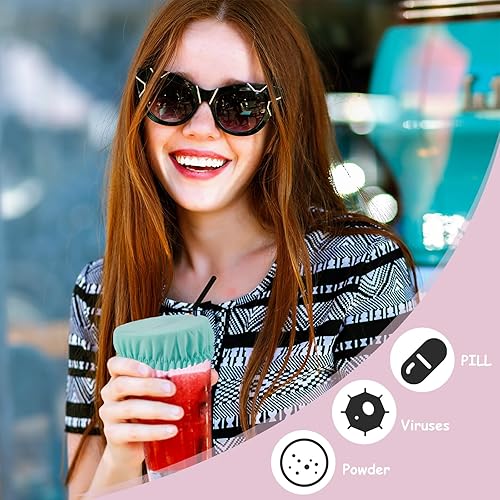 Tyqour Lot de 4 cache-gobelets anti-pointes pour boissons – Protection extensible réutilisable avec trou de paille pour la plupart des tasses en verre – Sécurité de bar pour femmes