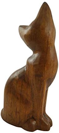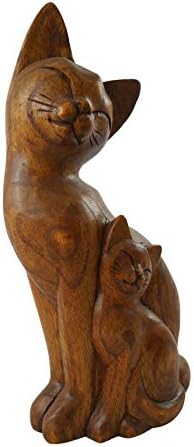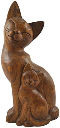 Coco Papaya Statue Chat et Chaton en Bois teinté sculpté à la Main 32cm