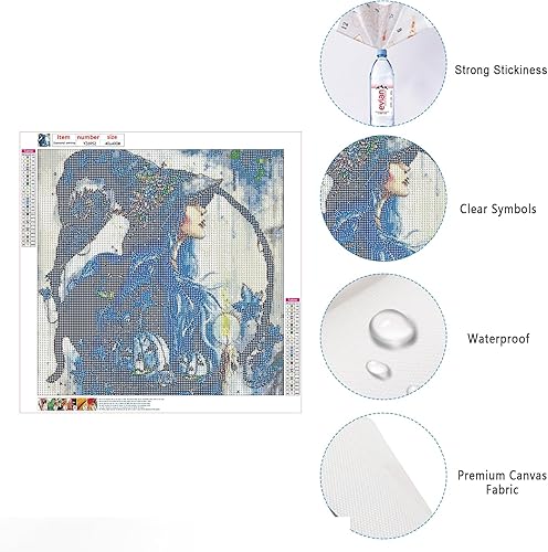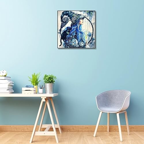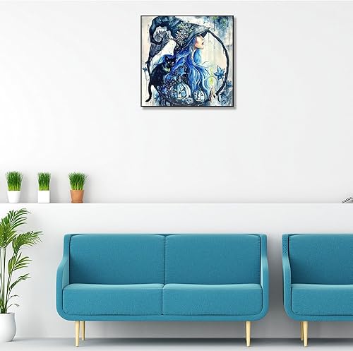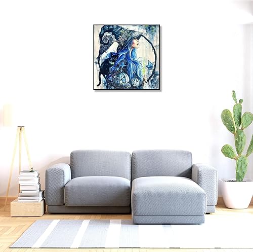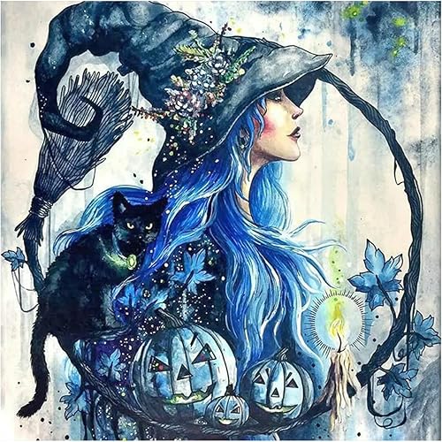 SHEGZHUC 40 x 40 cm Diamond Painting Sorcières Chat Noir Halloween Magicien Horreur Gothique Femme Diamant Peinture Art Broderie Point de Croix Images Cadeau