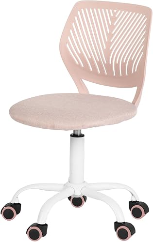 HOMYLIN Lot de 1 Chaise de Bureau, Petite Chaise de Bureau sans accoudoirs avec Coussin d'assise en Tissu et Dossier en Plastique, Chaise d'ordinateur pivotante de Couleur Macaron, pour étudiants,