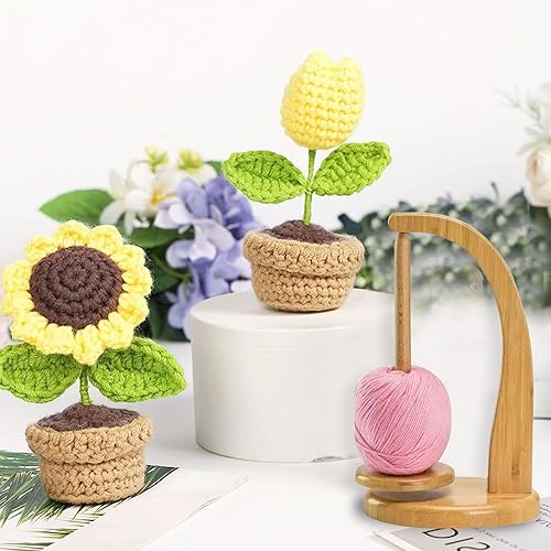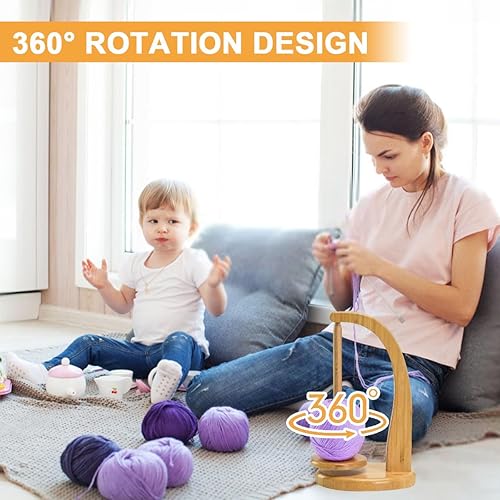 MeYuxg Dérouleur de laine, bigoudis en bois, porte-boules rotatif, roulement à billes en bois, cadeau pour les amateurs de fil de laine