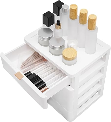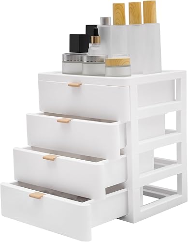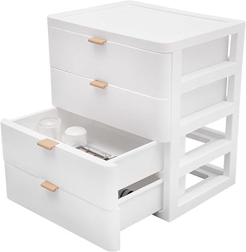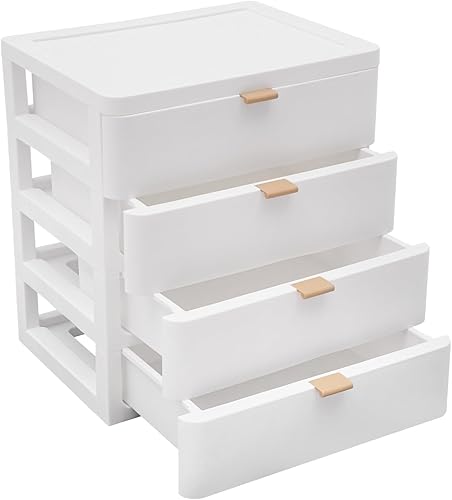 Caisson de Bureau avec 4 Tiroirs,Petite Tour de Rangement,Organiseur de Bureau,Boîte de Rangement Avec Tiroirs pour Bureau, Chambre à Coucher, Cosmétiques, Blanc, 26 x 20,2 x 29 cm