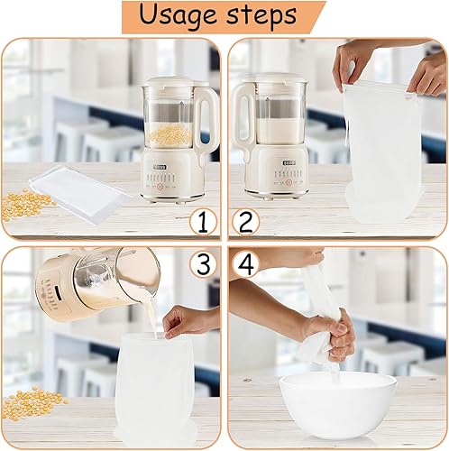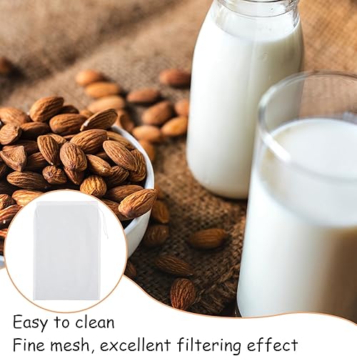 Guyode 10 Pièces Sac à Lait, 20 X 30 cm Sac Lait Végétal, Tissu en Nylon Réutilisable pour Filtrer le Jus, Blanc Filtre Passoire en Tissu, Sac en Tissu de Noix, Filtrer du Jus Végétal