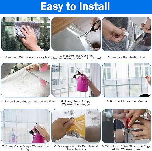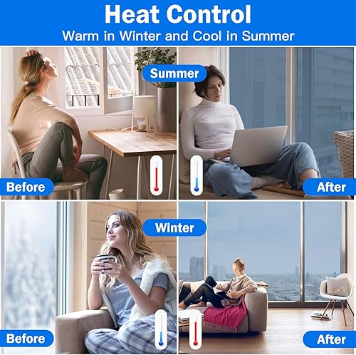 Film Fenetre Anti Regard - 44.5x200 cm - Anti Chaleur Anti UV, Film Miroir pour Fenetre avec Kit de Pose, Protection de la Vie Privée, Protection Solaire, pour Fenêtr Maison Bureau Magasin, Gris