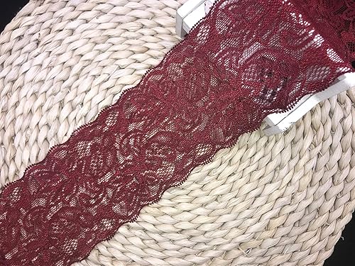 Ceinture européenne de 8 cm de large - Bordure élastique en dentelle - Rideau - Nappe Slipcover - Vêtements de mariée - Accessoires (4,5 m dans un paquet) (bordeaux)