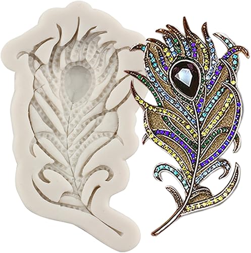 MINFEIDMS Moule En Silicone Plume Moules À Fondant Plume De Paon Pour Décoration De Gâteau Au Sucre Cupcake Topper Pâte De Gomme Au Chocolat Bonbons Argile Polymère