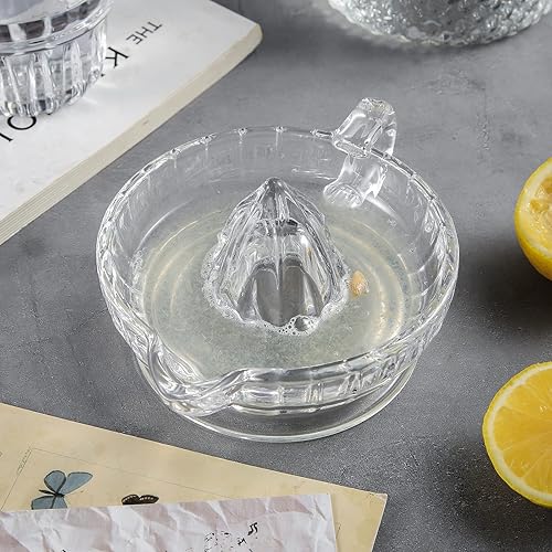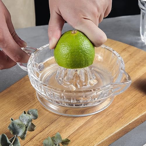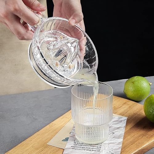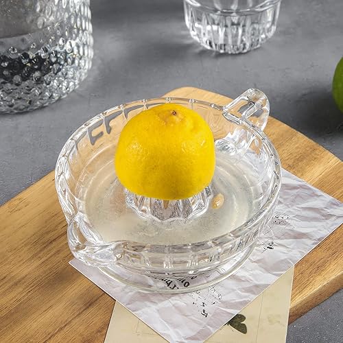 HFEHSKJ Presse-citron en verre, presse-agrumes manuel avec poignée et bec verseur, extracteur manuel de citron transparent, petit presse-agrumes portatif