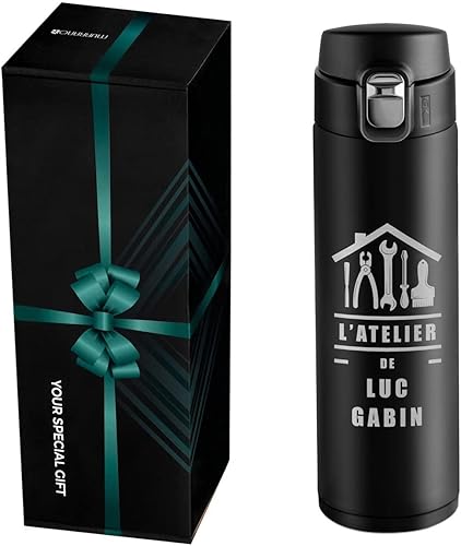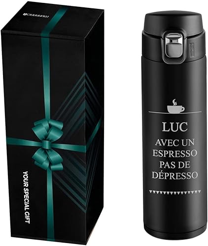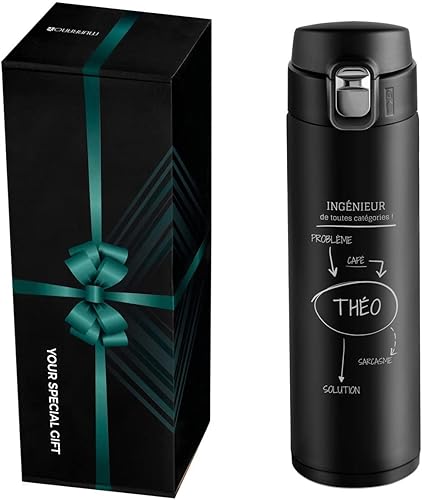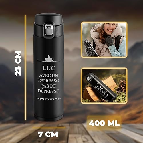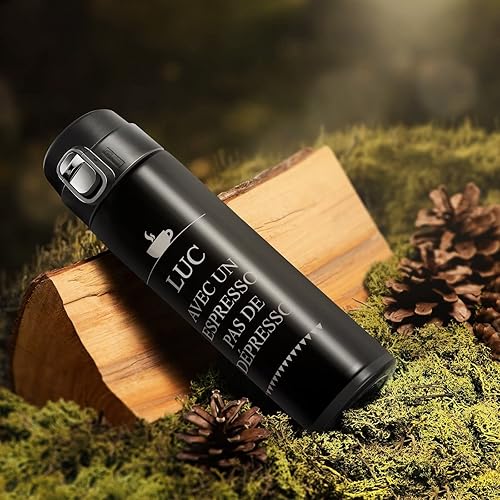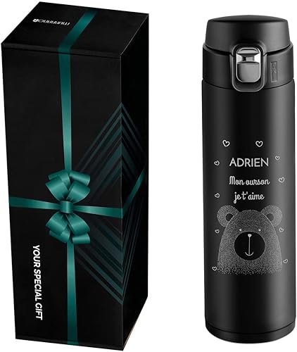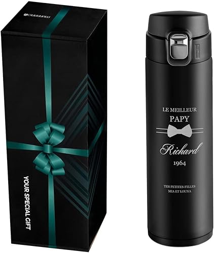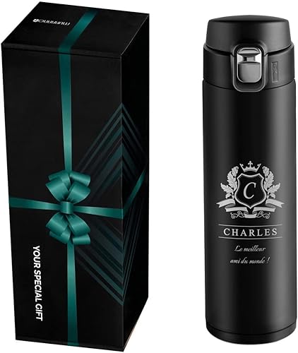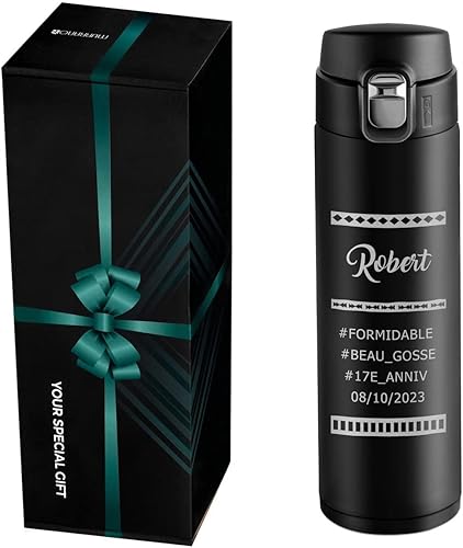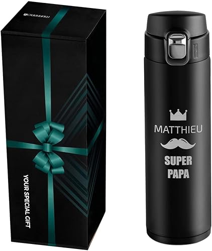 Maverton Bouteille isotherme personnalisable 50cl - Mug de voyage à café/thé - Thermos hermétique avec gravure pour hommes - pour anniversaire - pour lui/copain/papa - copain