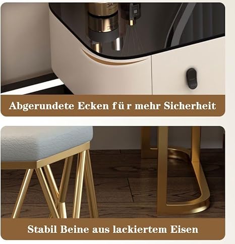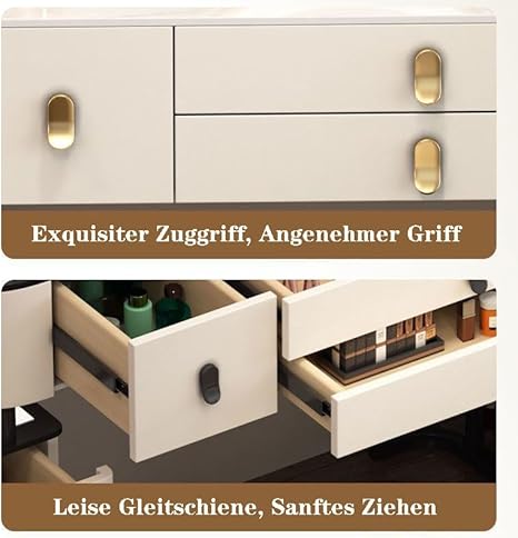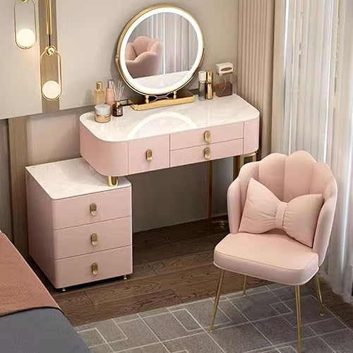 Coiffeuse avec Miroir et Lumière LED pour Votre Fille, 3 Couleurs Luminosité Réglable, Table de Maquillage avec Tabouret, Grands tiroirs Coiffeuse pour Femmes et Filles, Moderne
