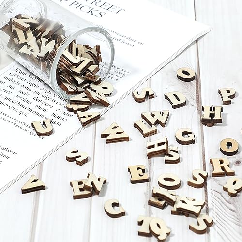 MOZEAT LENS Lot de 104 mini lettres en bois de 15 mm - Lettres de l'alphabet de A à Z - Pour bricolage, artisanat, mariage, fête, 573183_1_G2XcbGQKe