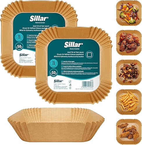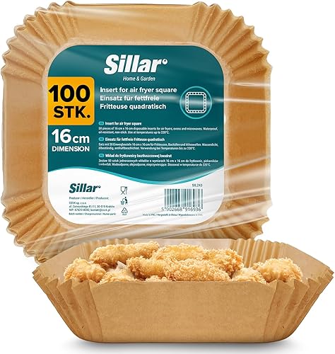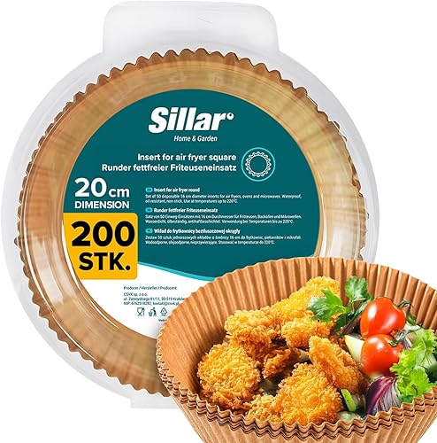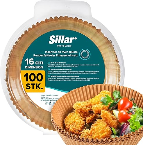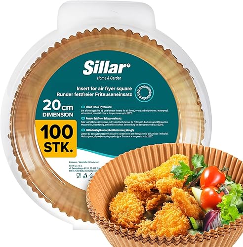 Sillar Papier Cuisson Air Fryer Rond 23 cm 100 pièces Paper Sulfurisé pour Friteuse a Air, Parchemin Moule Accessoires compatible avec Airfryer