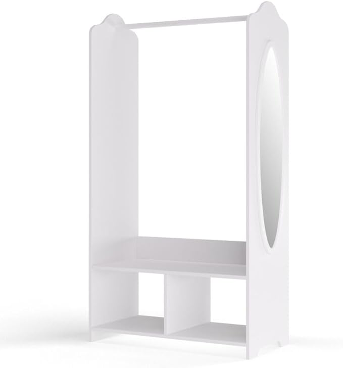 URBNLIVING Penderie à vêtements en bois MDF pour enfants avec étagères et miroir (blanc)