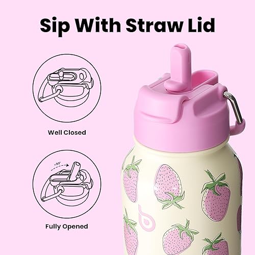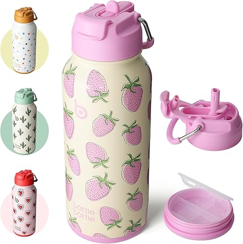 BOTTLE BOTTLE Bouteille d'eau isotherme en acier inoxydable de 946 ml avec paille et couvercle à double usage pour salle de sport avec pilulier (baie sucrée)