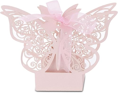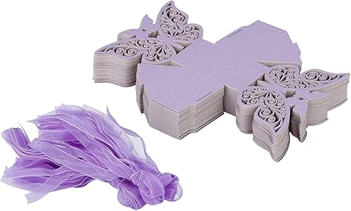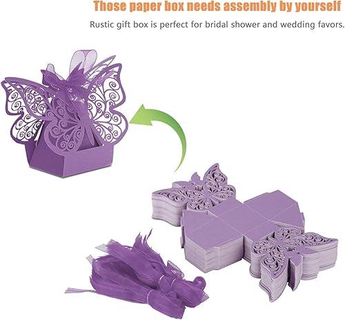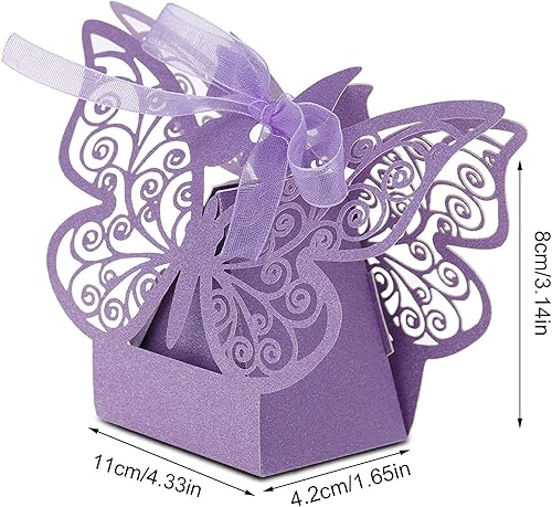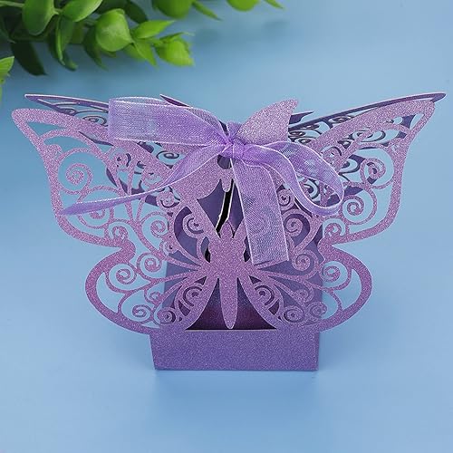 Boîtes à Dragées de Mariage, Boîte- Romantique en Forme de Papillon pour Fête D'anniversaire, 100 Pièces, Style Européen, Papier, Blanc, Rose, Beige, Bleu Clair, Violet (violet