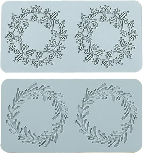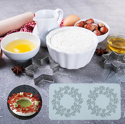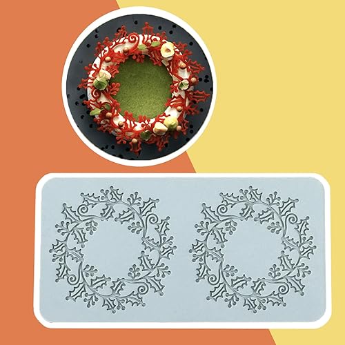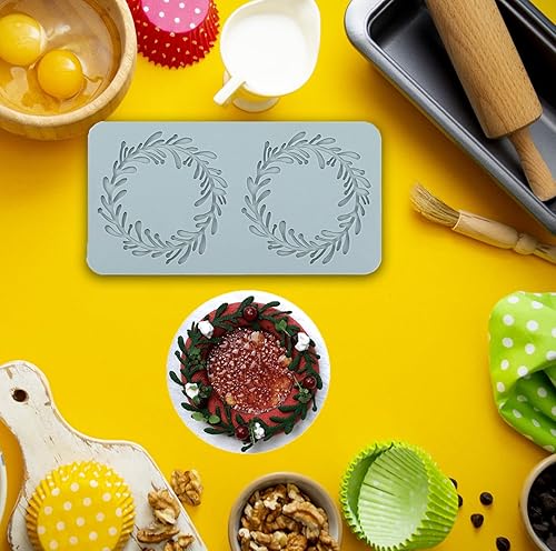 Molyorch 2 Pièces Moule de Silicone, Moule de Gaufrage, Pâtisserie Dentelle Fondant, Convient pour les Gâteaux, Desserts, Moule pour couronne de Noël art du Sucre, Décoration Artisanale.