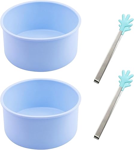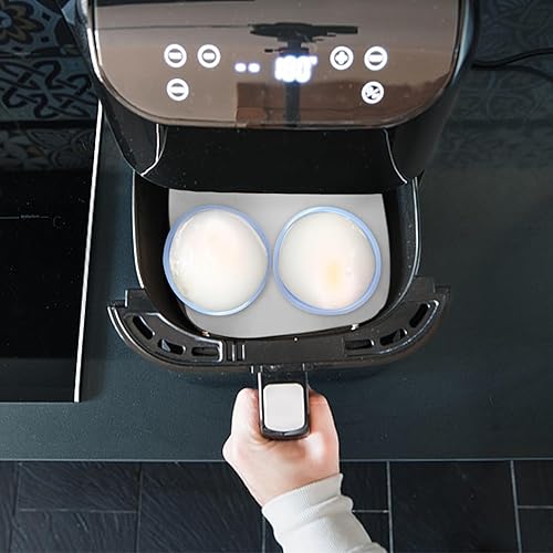 Lot de 2 moules à œufs pour friteuse à air bleu clair avec 2 pinces de préhension bleues anti-chaleur, petit déjeuner, cuisine ménagère, sandwichs aux œufs au plat, muffins, silicone pour friteuse à