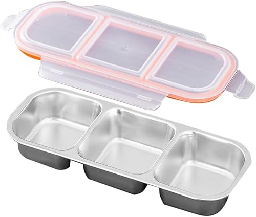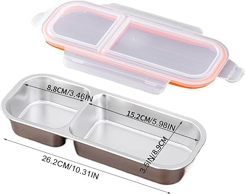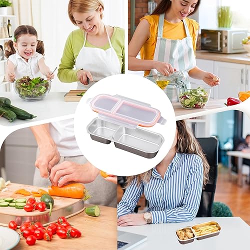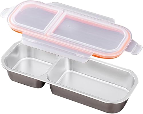 Xistuoz Boîtes à goûter pour | Boîte à déjeuner empilable en métal avec séparateur – Passe au lave-vaisselle, scellée en silicone, portable, hermétique en silicone pour condiments à emporter