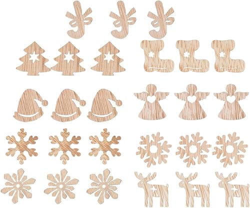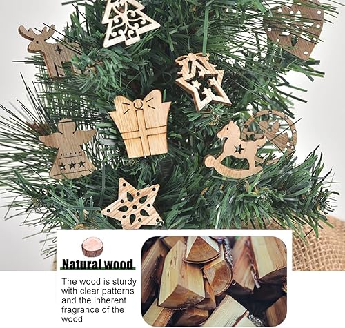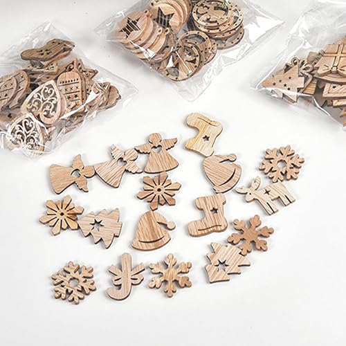 CRLLDPM 100 Pièce Decoration Noel Sapin Bois, Deco Noel Bois Ornements, Noel en Bois Pendentifs Artisanat, Artisanat en Bois de Flocon, Embellissement Suspendu, pour Arbre de Noël Artisanat Bricolage