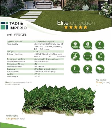 Tonte de gazon de 20 mm hauteur artificielle, moquette terrasse ou jardin (40 x 70 cm)
