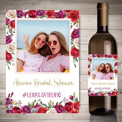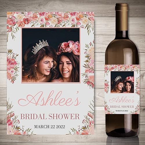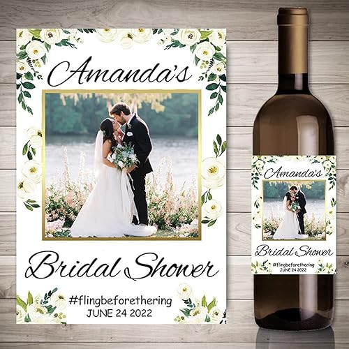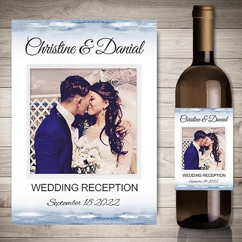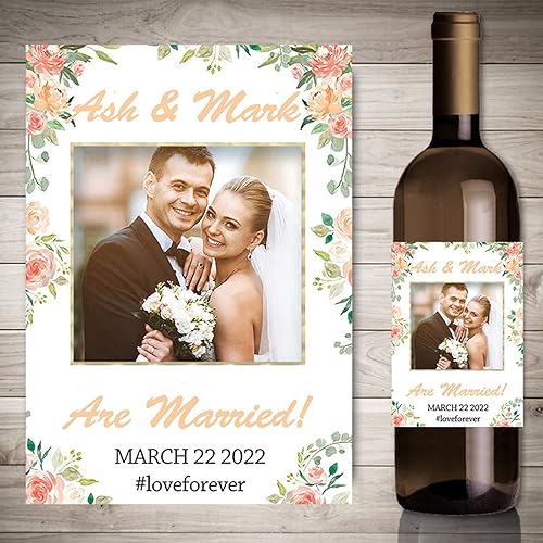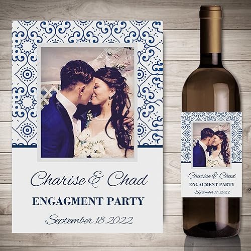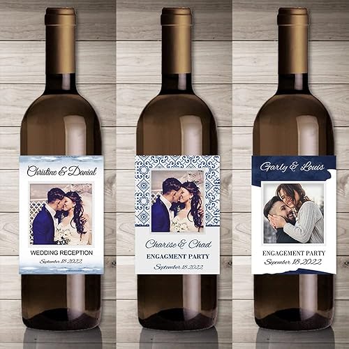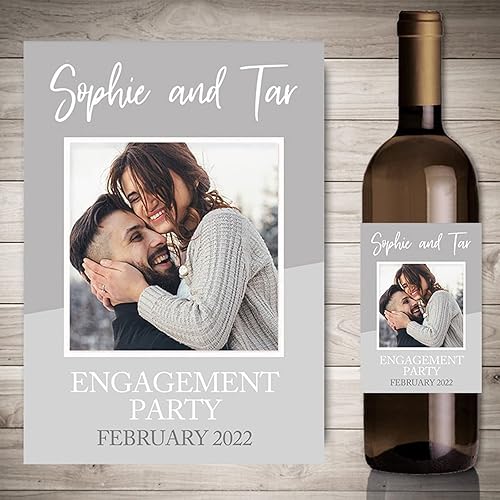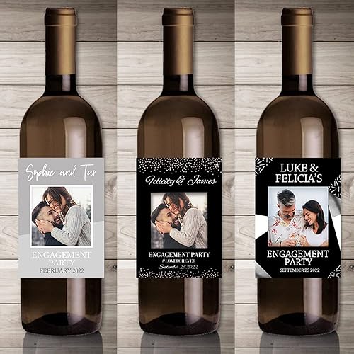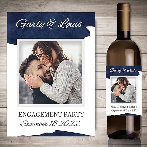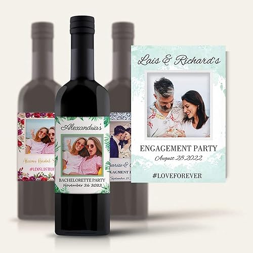 Autocollants de vin d'impression personnalisés avec photo, décor de fête de fiançailles de mariage,etiquette bouteille personnalisable,20 pièces (4,9 x 12.7cm)