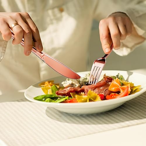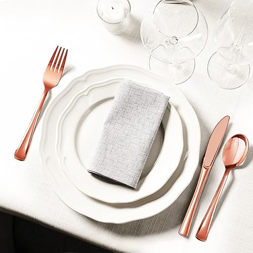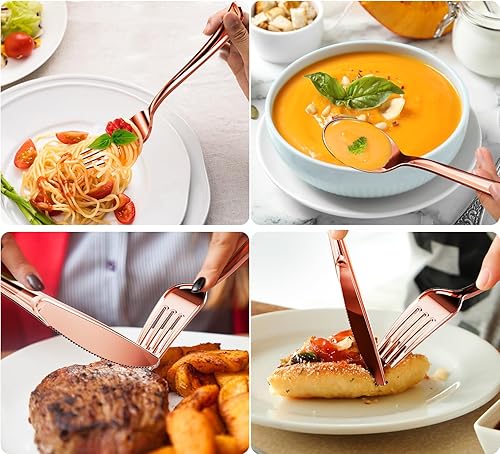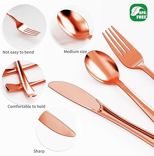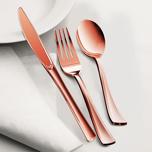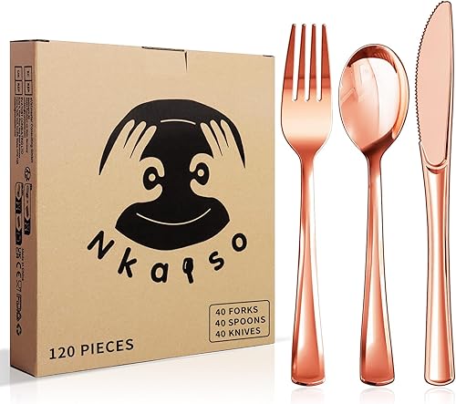 Nkaiso 120 Pièces Rose Or Réutilisables Couverts, 40 Fourchettes, Cuillères & Couteaux, Réutilisables Vaisselle Parfaits pour les Fêtes d'Anniversaire, les Barbecues, les Mariages et le Camping