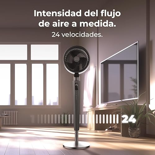 Cecotec Ventilateur Circulateur d'Air sur Pied EnergySilence 2400 Cyclone Noir. 40W, Puissante Circulation d'Air, 24 Vitesses, Oscillation 120º, Télécommande, Minuteur 12h, Écran LED