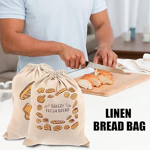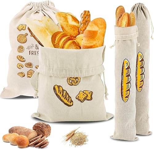Auvstar Sac à Pain Réutilisable en Coton Lin - Cordon Respirant Frais - Paquet de 4 Pour Conserver Les Baguettes, Le Pain, Les Fruits et Légumes