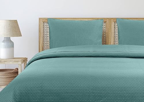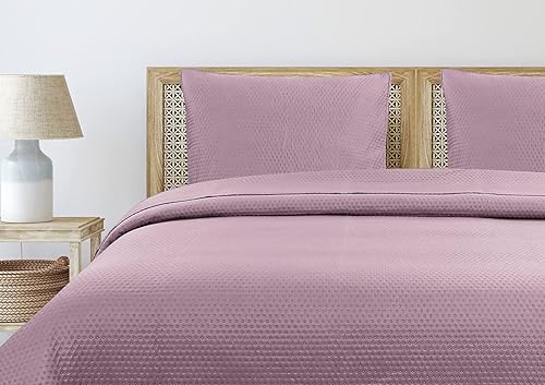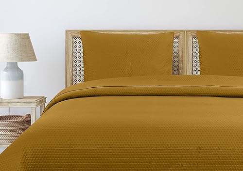 Autrefois Dessus de lit ô Marron Camel - Couvre lit matelassé Doux et léger - Boutis uni 240x260 cm - 2 Places avec Deux taies 65x65cm- Motifs Ronds - Couverture Microfibre (Camel)