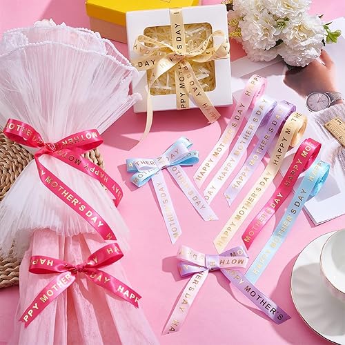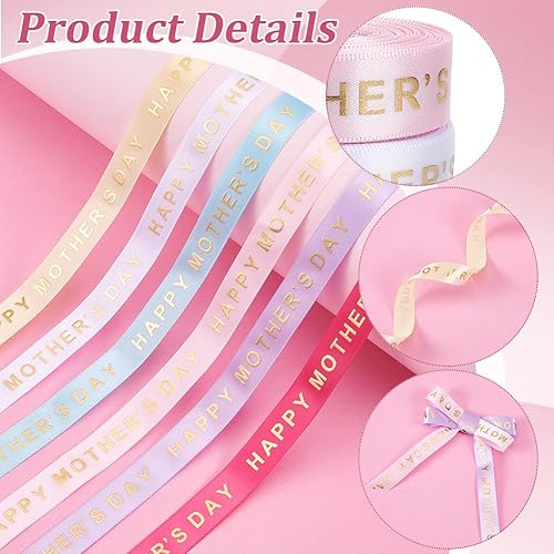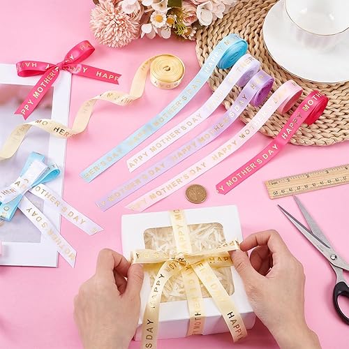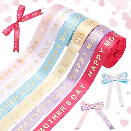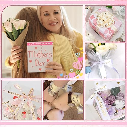 PH PandaHall 6 Rouleaux Rubans Fête des Mères Ruban Maman de Gros Grain Polyester 16.5mm Ruban Décoratif avec Mots Estampés Dorés pour Emballage Cadeau Bouquet de Fleurs Décoration de Fête 27 m