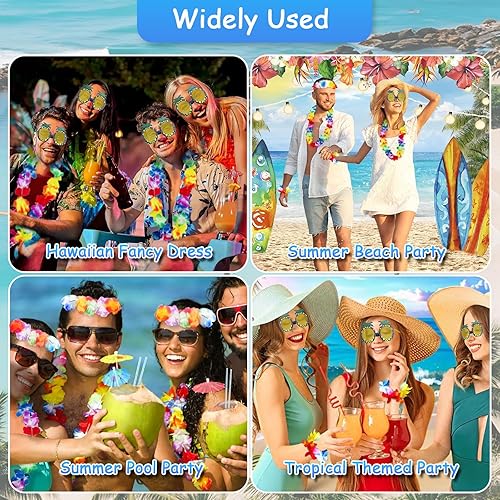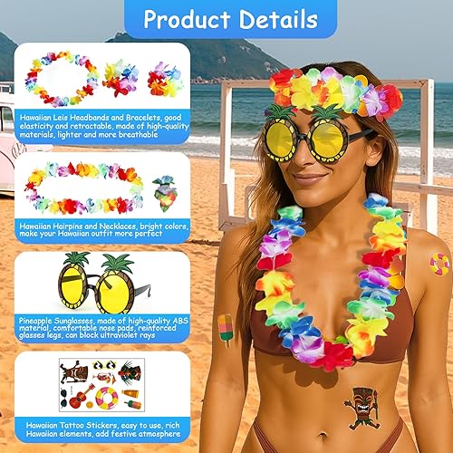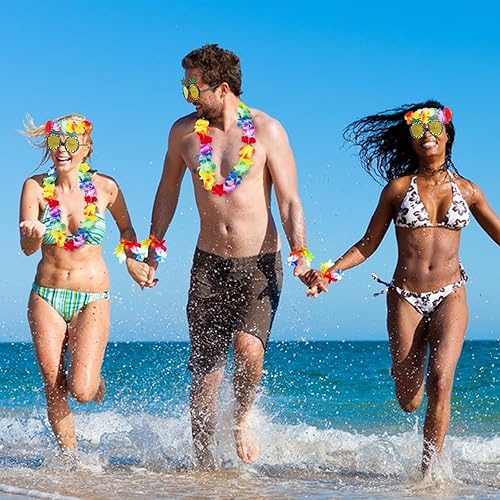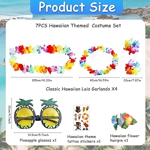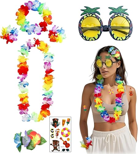 LMSHOWOWO Chaînes hawaïennes, décoration hawaïenne, chaîne de fleurs, 6 guirlandes hawaïennes et 1 paire de lunettes de soleil ananas, pour robe, favoris, plage et anniversaires à thème