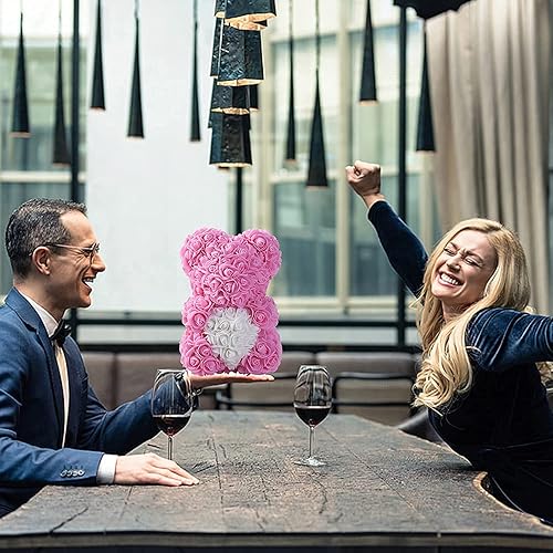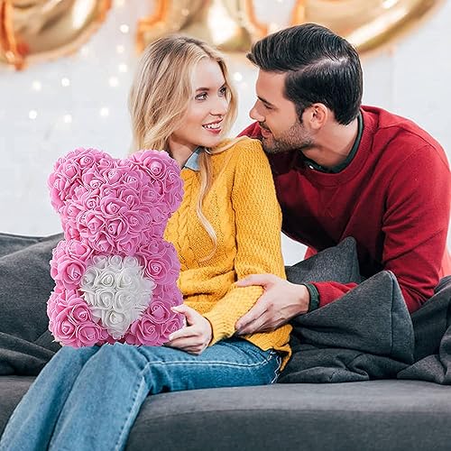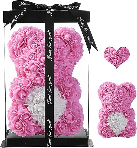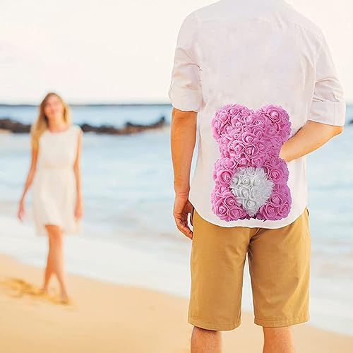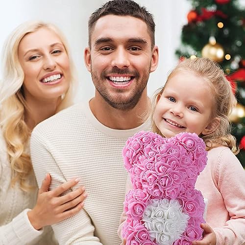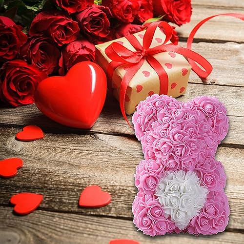 Ruiuzioong Ours de fleurs avec boîte cadeau, cadeau d'anniversaire pour femme, petite amie, pour anniversaire, anniversaire de mariage (rose)