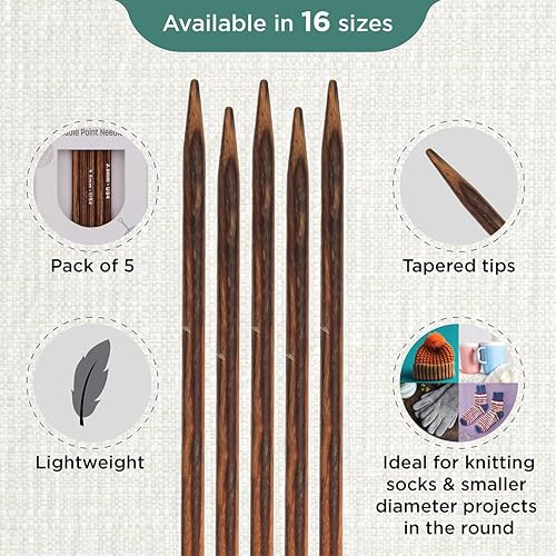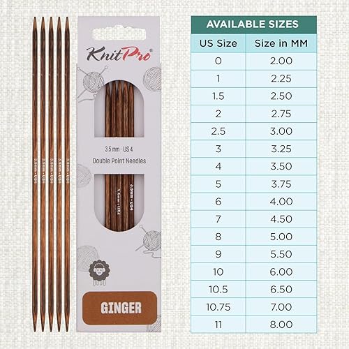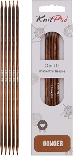 KnitPro Aiguilles à tricoter à double pointe Ginger – 12,5 cm x 3,5 mm, lot de 5, Brown