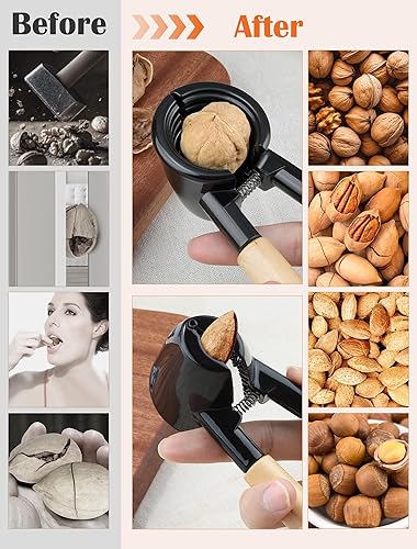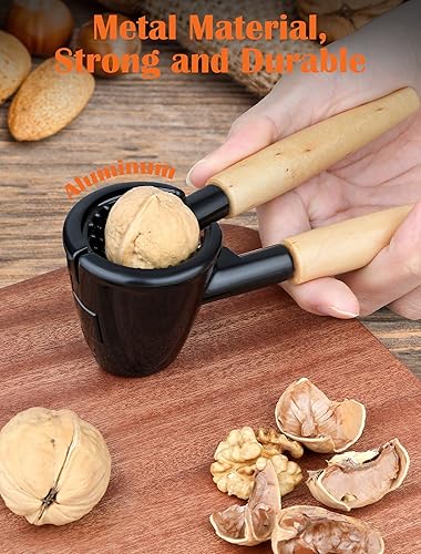 NEUTYPECHIC Casse-Noix, Casse-Noix Multifonctionnel en Aluminium de 17 cm, Casse-Noix Simple avec Manche en Bois, Convient pour Les Noix de Pécan, Les Noix de pécan, Les Amandes, Les Noisettes et Les
