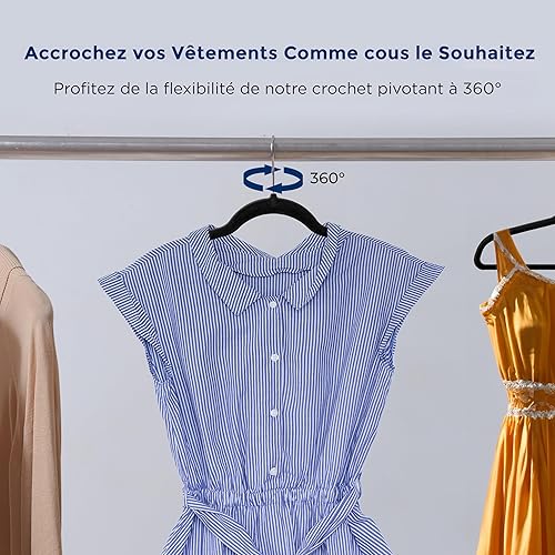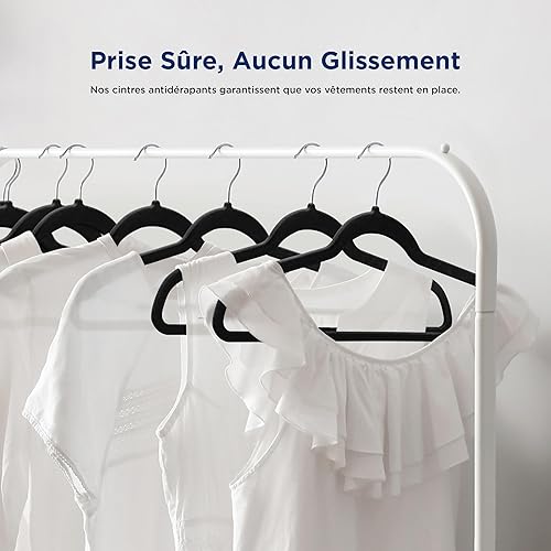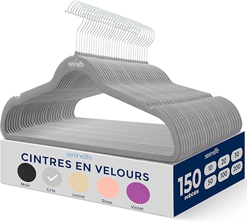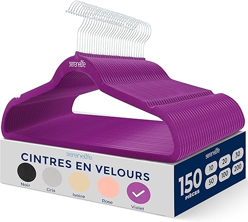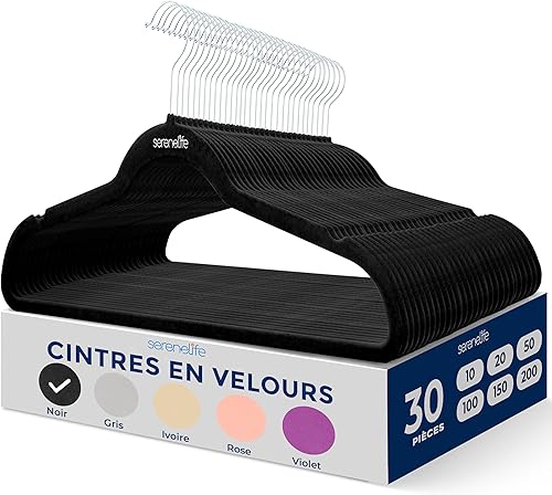 SereneLife Cintres - Cintres en Velours Antidérapants - Porte-Vêtement Fins et Robustes - avec Crochet en Métal Pivotant à 360° - Supportant jusqu'à 4,5 kg pour Vestes, Pantalons et Robes - Lot de 50