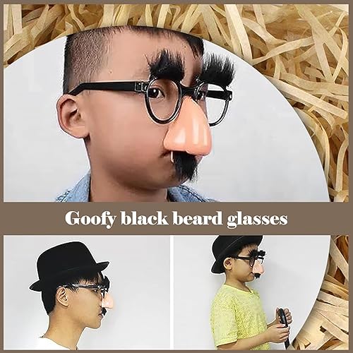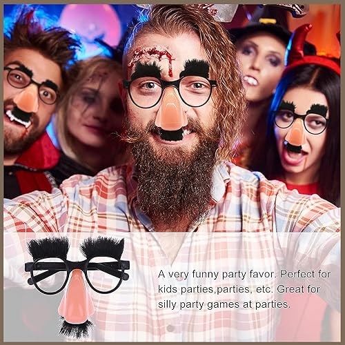 KALUROIL 4 Pièces lunettes de fête, Déguisement de Lunettes à Gros Nez avec des Sourcils Et Une Moustache de Nez Drôles pour Les Fournitures de Fête Halloween Nouvel an