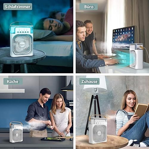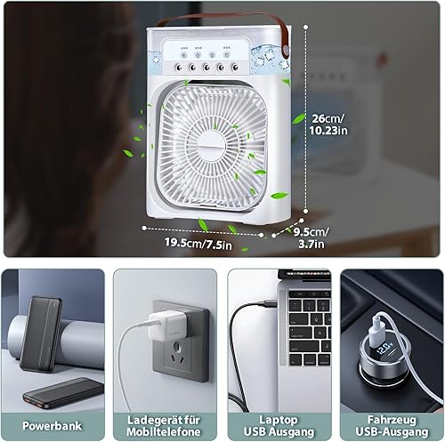 JONRRYIN Climatiseur Mobile Portable, Mini Refroidisseur D'air, Mini Air Climatiseur Ventilateur, Air Cooler fan con 3 Velocità, Timer, 7 Lumières LED, Modes de Brumisation pour Maison, Bureau