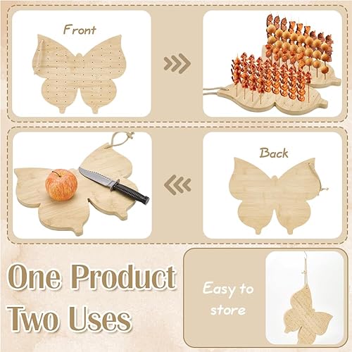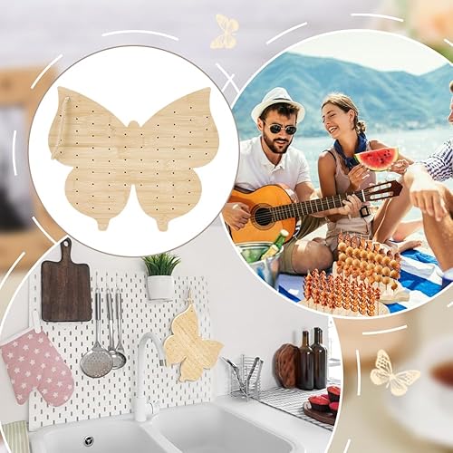 FINGERINSPIRE Support de Brochettes de Nourriture en Bambou en Forme de Papillon Support de Brochettes de Fruits 70 Trou Présentoir de Sucettes Couleur Blé Support D'Affichage de Nourriture en Bois